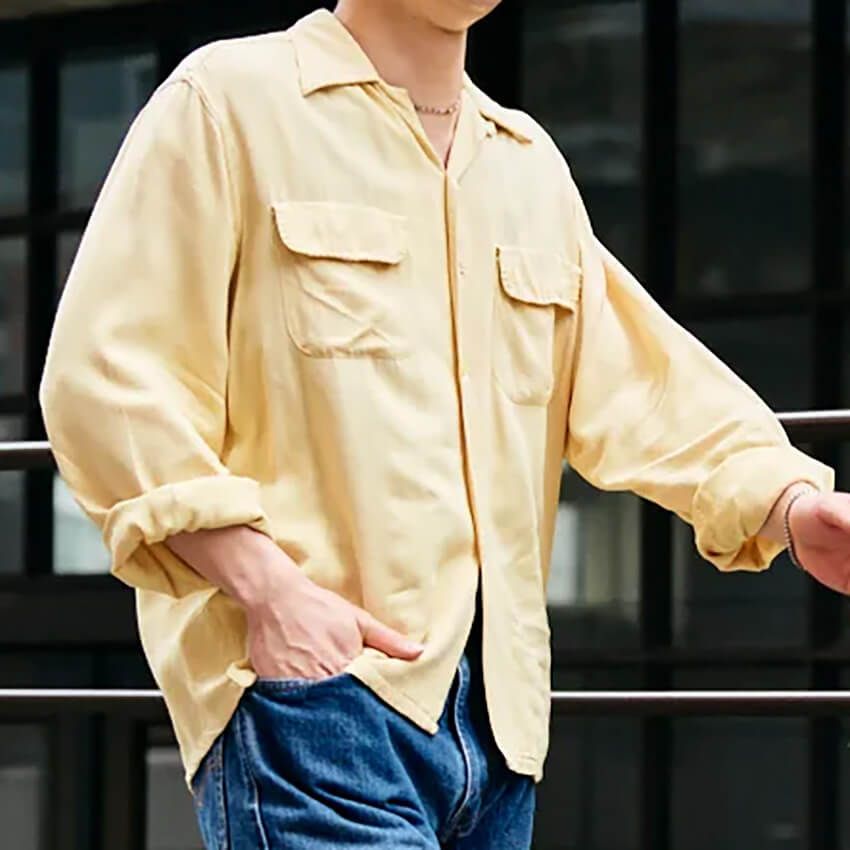 ▶︎作道さんのスナップをすべて見る作道大夢さん(26歳)古着市場でも根強い人気を誇るタウンクラフトのシャツをサラリと羽織った、自然体なスタイリング。ボトムスにはベンデイビスのワークパンツを選び、無骨な表情を持たせている。