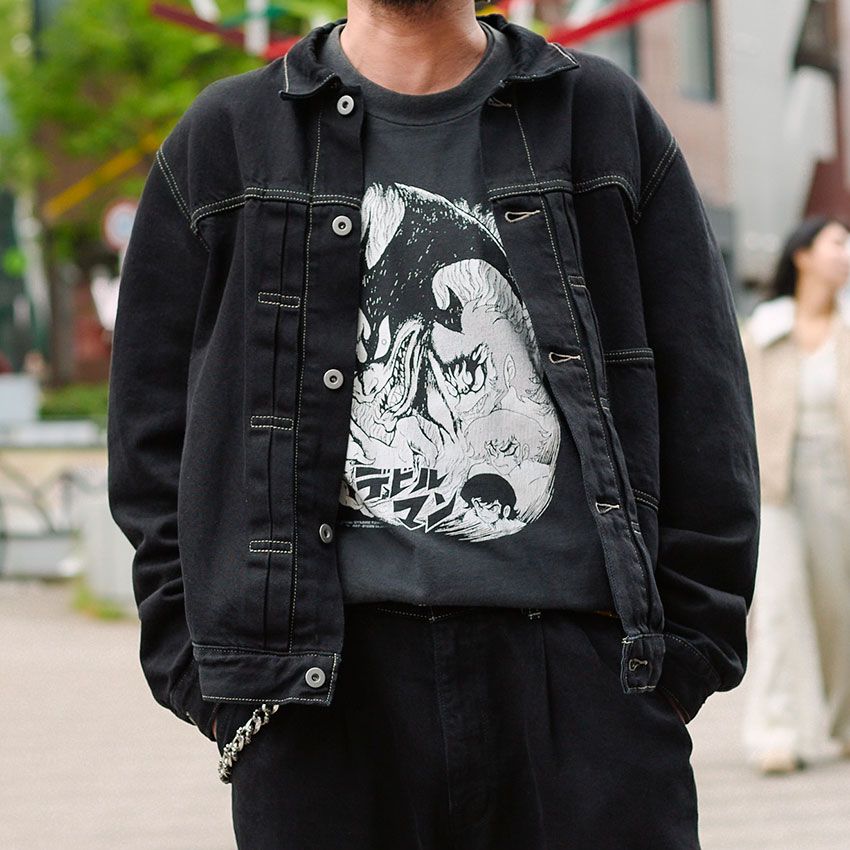 【写真12点】「ブラックのGジャンの着こなし好例」の詳細を写真でチェックカジュアルな印象の強いデニムアウターも、カラーをブラックに変えるだけで一気に都会的で洗練されたアイテムへと生まれ変わる。