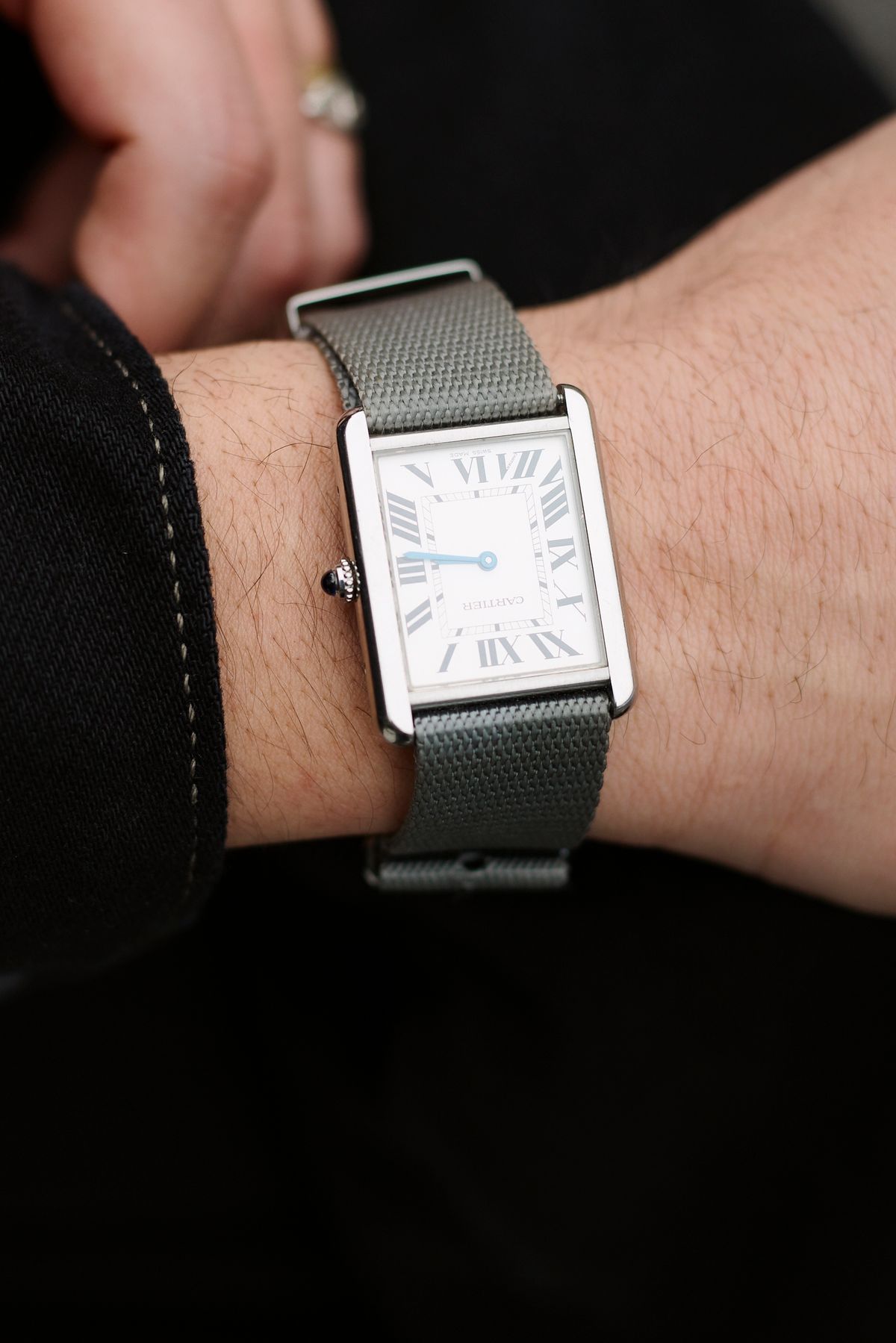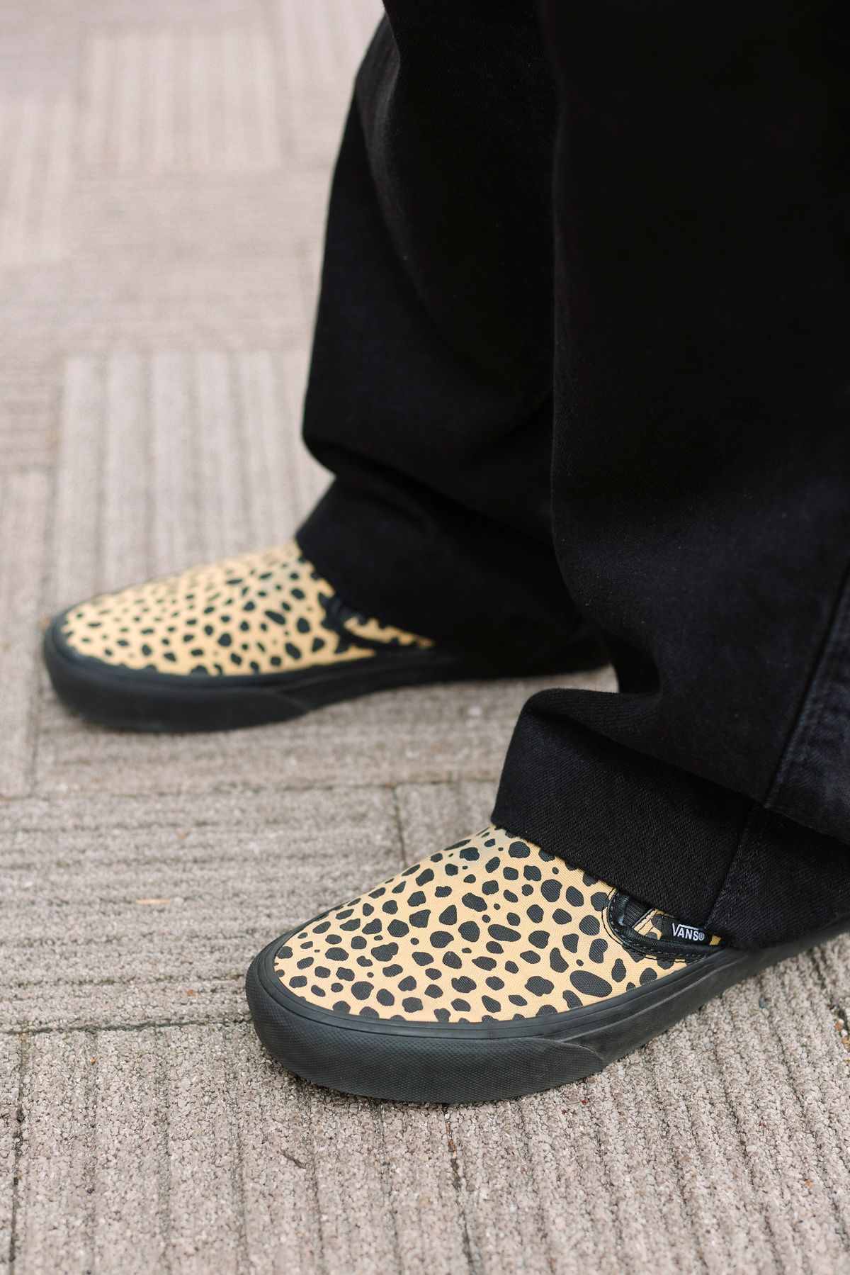 足元にはヴァンズのスニーカーを配置し、軽快なストリートの要素をプラス。カルティエの腕時計やクロムハーツのウォレットチェーン、エルメスのリングといったハイエンドな小物が、着こなしの完成度を力強く押し上げている。