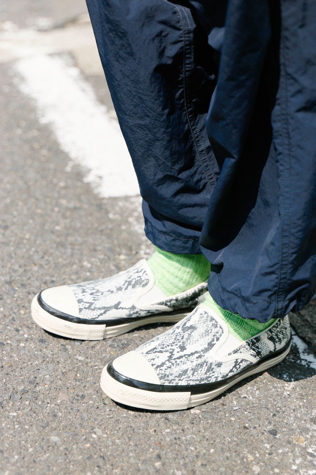 シャツ=アンライクリー Tシャツ=コモリ パンツ=テアトラ スニーカー=サロモン バッグ=バッグジャック 腕時計=ナバルウォッチ