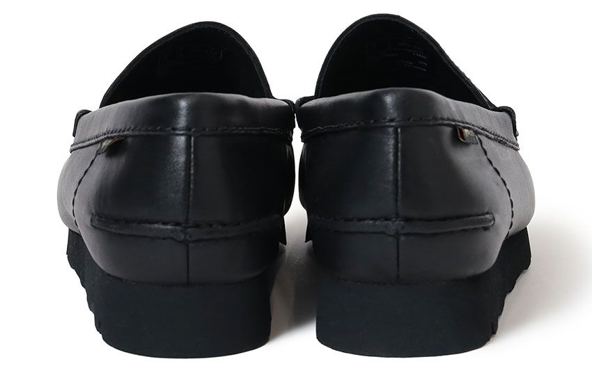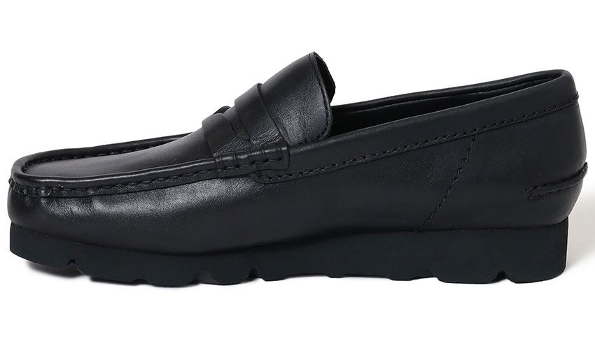 これにより、従来のカジュアルな印象から一歩踏み込み、よりミニマルで洗練された佇まいへと昇華された。モカシン由来の柔らかな履き心地と、ローファーの端正さが共存するバランスは、単なるアレンジにとどまらない完成度を見せる。