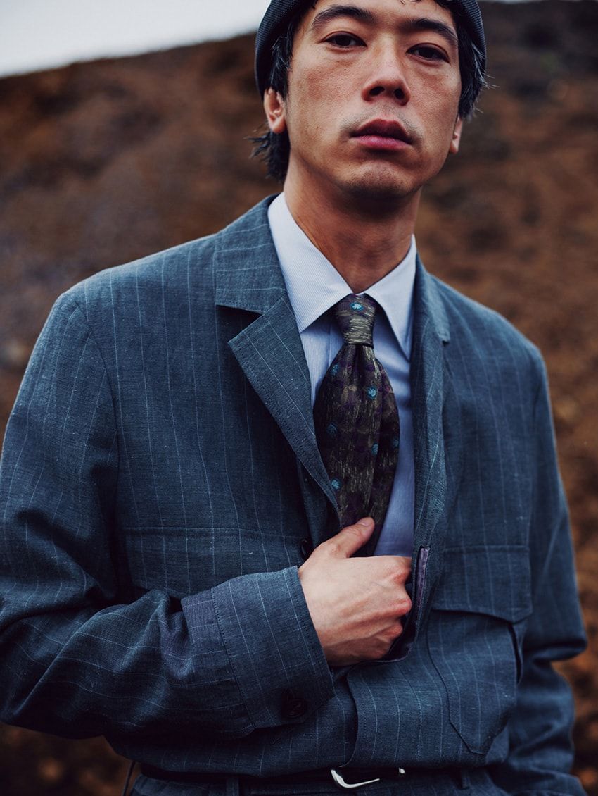 ジャケット12万1000円、シャツ2万2000円、パンツ4万9500円、キャップ1万3200円、タイ1万7600円/すべてポール・スミス(ポール・スミス リミテッド 03-3478-5600)