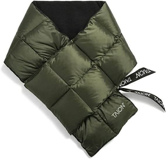 ナンガはダウンマフラーというマフラーを製造しており、記事にはリサイクルナイロン、羽毛にはリサイクルダウンを使用したエコなアイテムが特徴だ。
