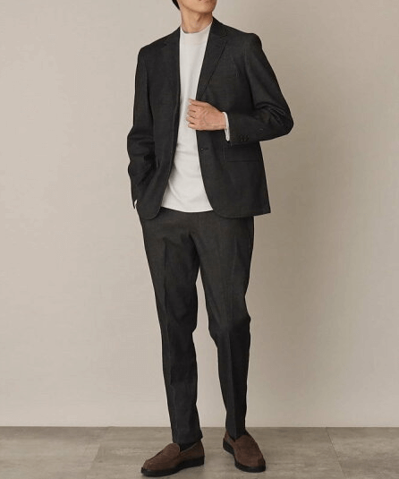 肩幅や身幅、裾のサイズ感が程良ければ、ジャケットと合わせても問題ありません。