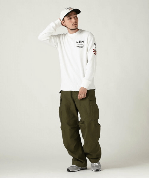 クセの強いワイドなボトムスとも相性が良いです。