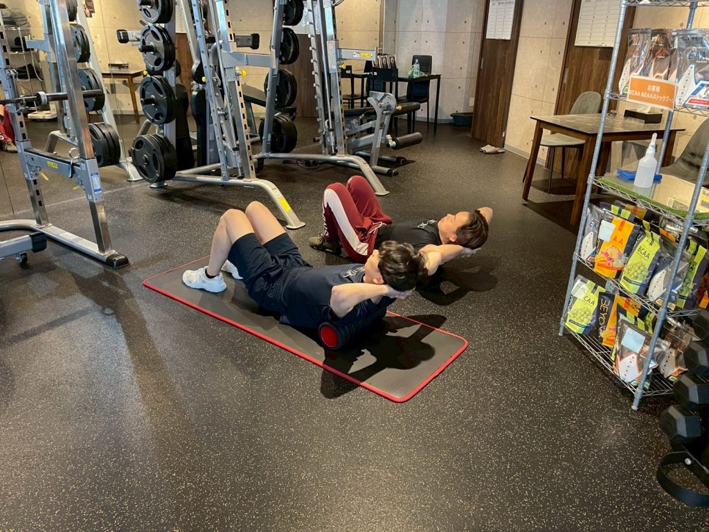 筋トレを行う前にまずは筋膜リリースからスタート。