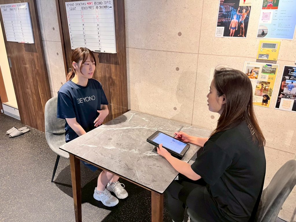 日頃の運動などや気になる部位などヒアリングしてもらい、どこの部位をトレーニングするのかを決めてもらいます。