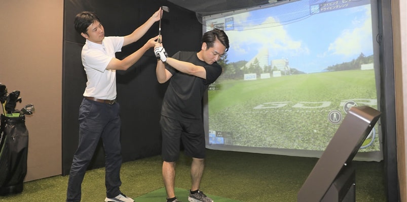 - スイング解析機「スイングモニター」でデータを確認しながらレッスン